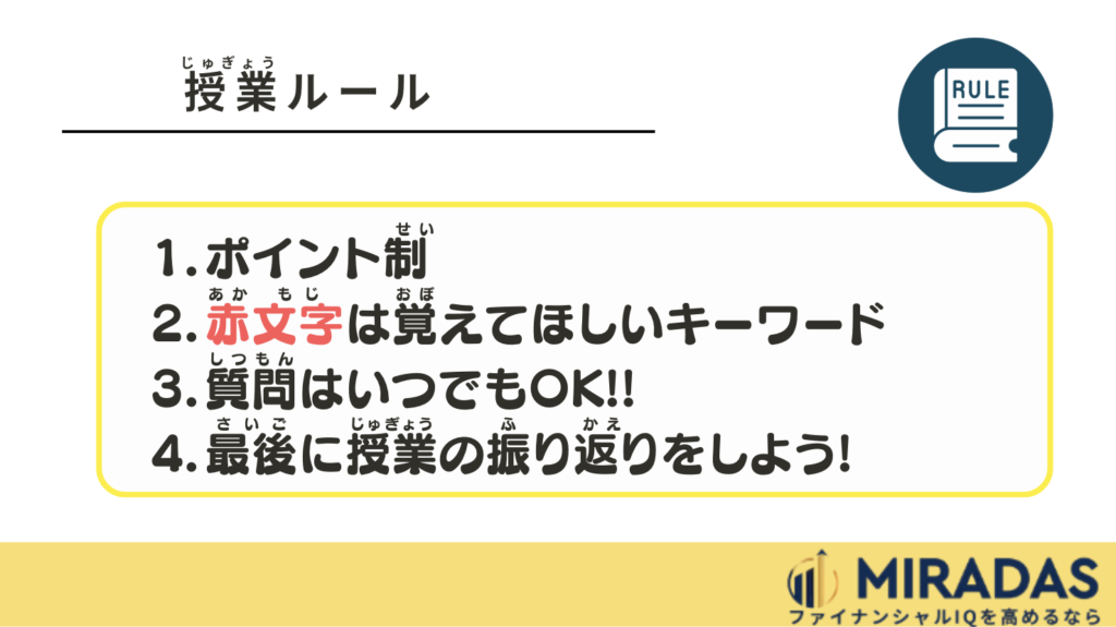 私の授業のモットーは、「楽しい+ためになるお金の勉強」です。